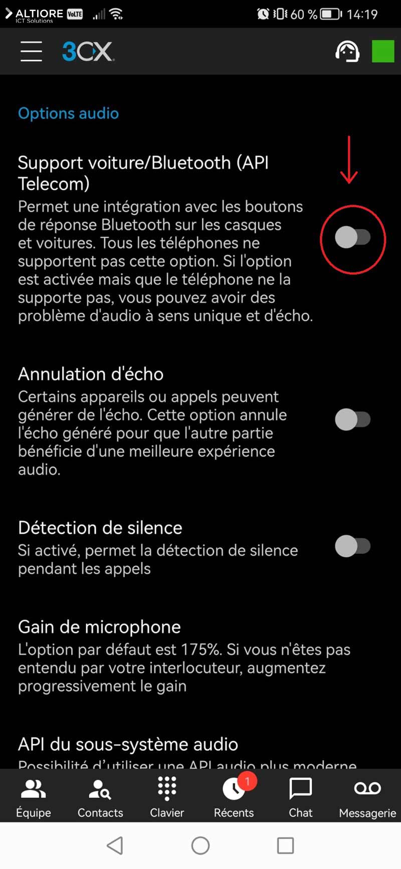 Désactivation Bluetooth API 3CX ®