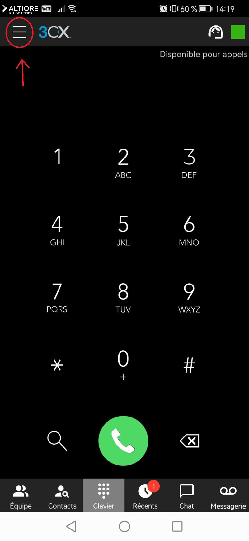 Appuyez sur l'icône "hamburger" pour afficher l'onglet "paramètres