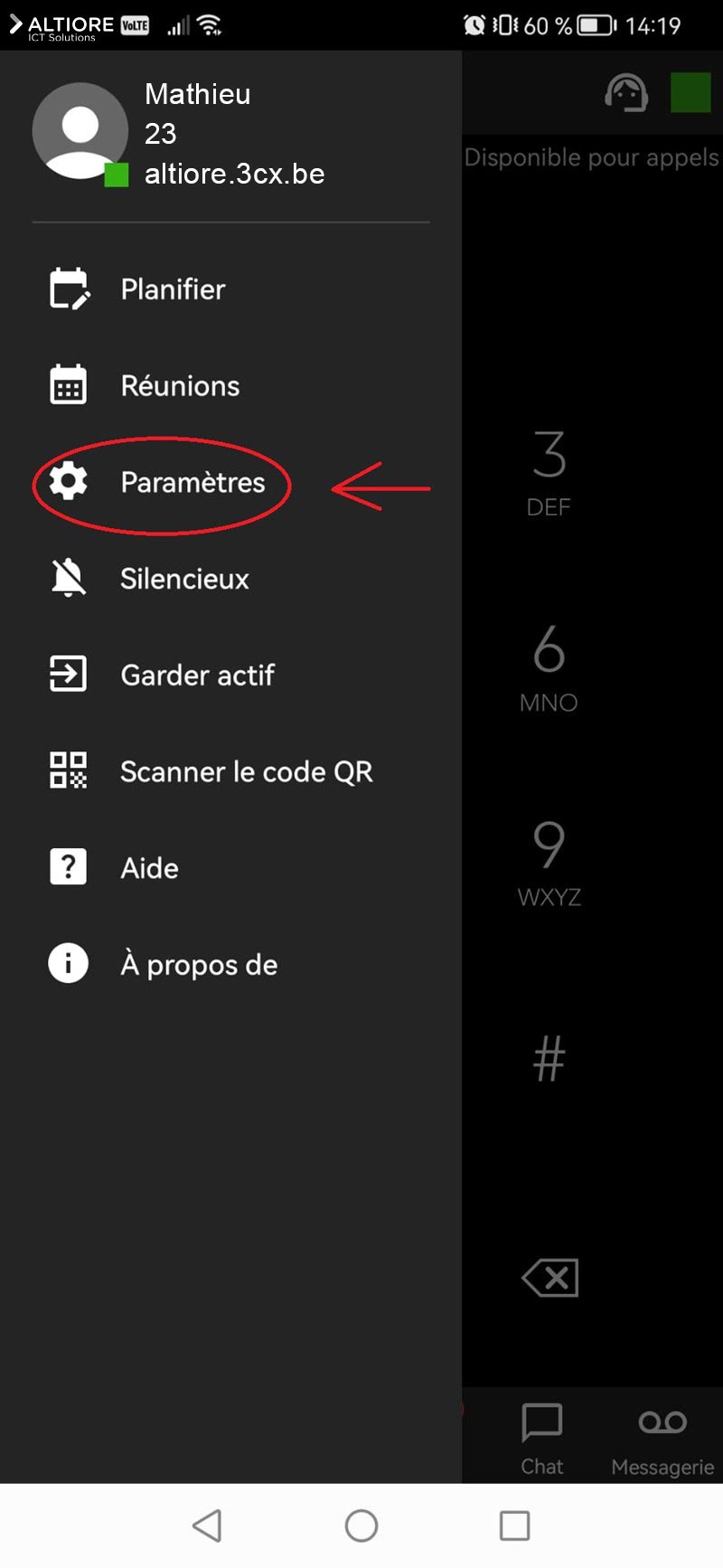Appuyez sur "Paramètres"