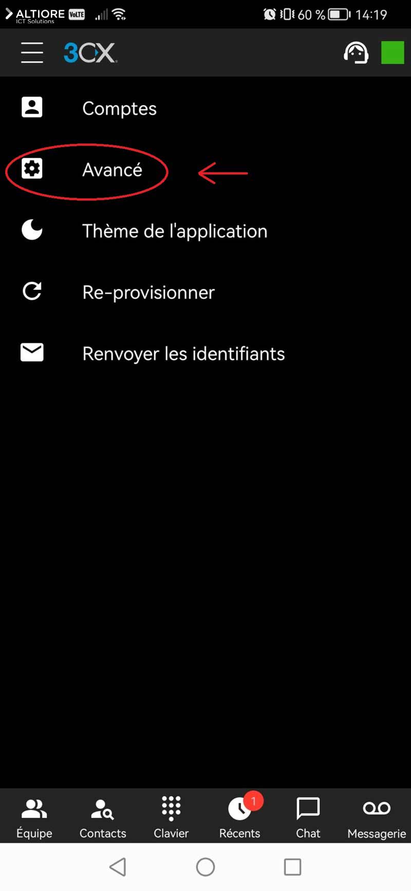 Appuyez sur "Avancé"