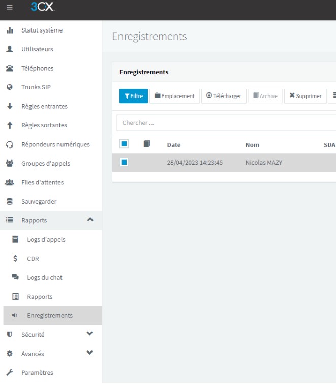 Ce document montre la procédure pour mettre en place les enregistrements d'appels dans 3CX. Attention que nous rappelons qu'il est légalement obligatoire de prévenir les personnes que vous appelez que les appels sont susceptibles d'êtres enregistrés.
