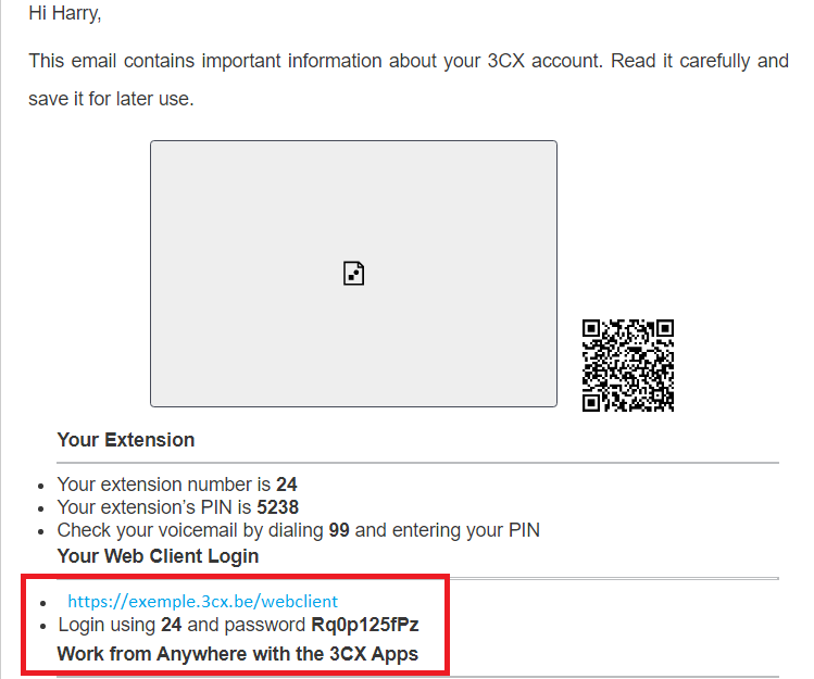 Dans cette exemple votre numéro d'extension est 24 et votre mot de passe est Rq0p125fPz