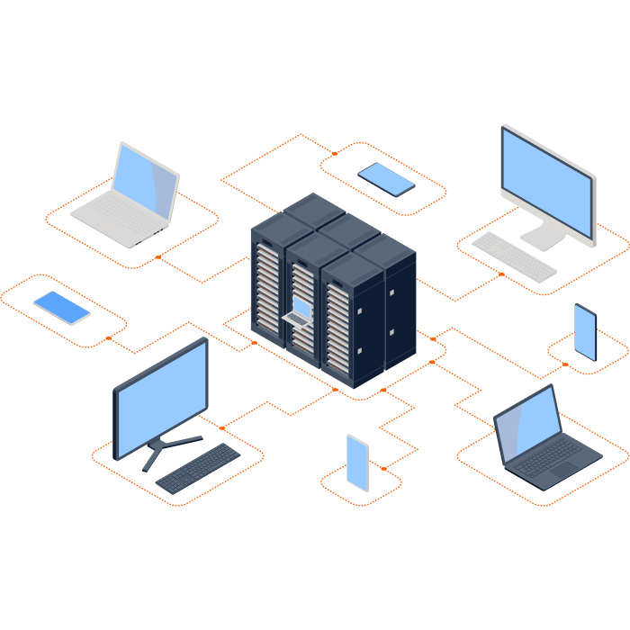 L’installation de serveurs permet de stocker et partager vos données, consulter vos emails, faire fonctionner des applications (un CRM, un ERP, une base de données, un logiciel de gestion…), un e-shop, mettre en commun vos imprimantes, vous connecter à Internet…