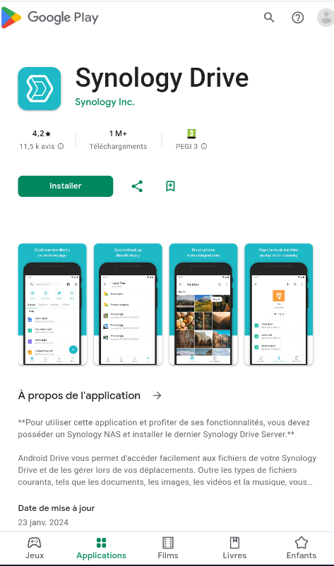 Sélectionnez l'application Synology Drive dans les résultats de la recherche.
