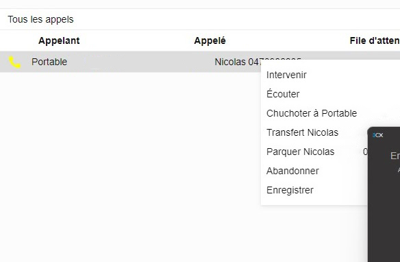 Faites un clique droit sur l'appel sur lequel vous souhaitez intéragir,