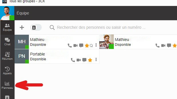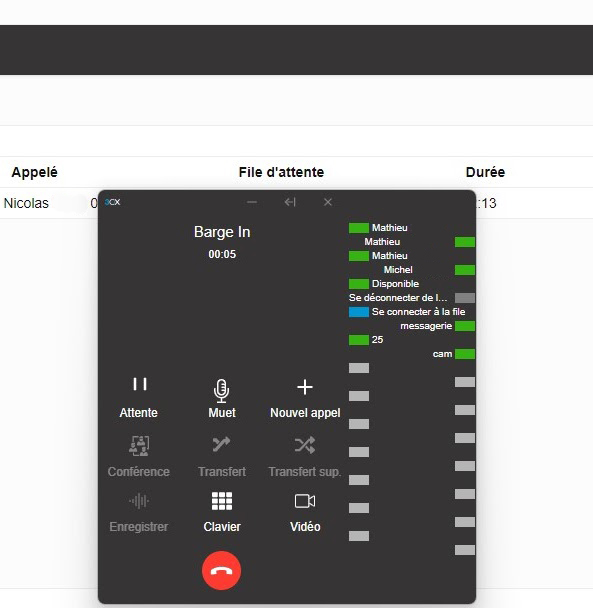 Vous verrez ensuite les différents appels en cours si les droits du 3CX ou de votre groupe vous l'y autorise.
