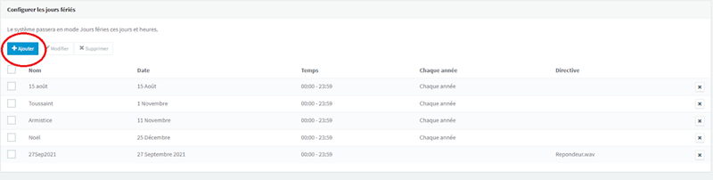 4.DANS LA SECTION “CONFIGURER LES JOURS FÉRIÉS”, APPUYEZ SUR AJOUTER